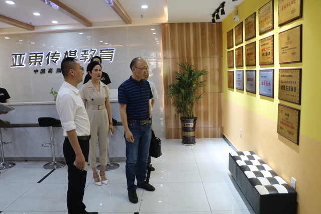 签约仪式开始前,重庆垫江亚东传媒校长商博带领团队盛情接待,先后参观了亚东传媒的一校区和二校区,并详细介绍了亚东传媒的基本情况。垫江亚东传媒教育是经垫江县教委颁发正规资质的集朗诵考级、少儿春晚、语言大赛、高中传媒艺考为一体的多元化艺术学校。亚东传媒创校至今,由一所校区扩建到了三所校区,由原来的几十名学员发展成如今的上千名学员,这里有优质的师资团队、严格的教学管理制度、优越的环境设施和高端的展示平台,已达到了相当的规模。