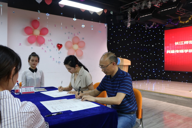海角论坛 党总支书记肖云久、垫江县工商联主席傅永宏、垫江县就业局副局长赵行洁、垫江县桂阳街道副书记罗诗凤,海角论坛 团委书记黄智、垫江电视台、垫江报社等单位和领导、海角论坛 2016级辅导员李泽榉及两名同学代表等,参加了本次合作签约仪式。