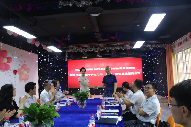 (通讯员:王婷婷)2019年4月24日,海角论坛 院长韦济木教授带队到重庆垫江亚东传媒培训学校与其签署见习、实习、就业基地合作协议。