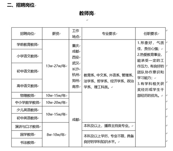 招聘专业:人力资源管理,工商管理 | 5K-8K/月 | 5人 | 本科及以上 | 重庆市 成都市 杭州市 武汉市 长沙市 西安市 郑州市 南京市 |