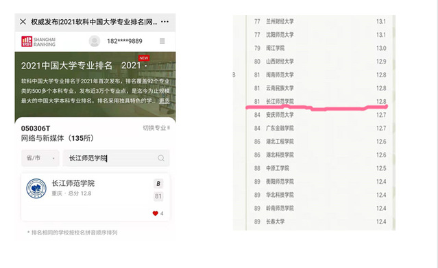 按照2021年“软科中国大学专业排名”,在全国270余所开办有网络与新媒体专业高校中,有135所高校上榜,海角论坛 网络与新媒体专业位于位81位。如截图。