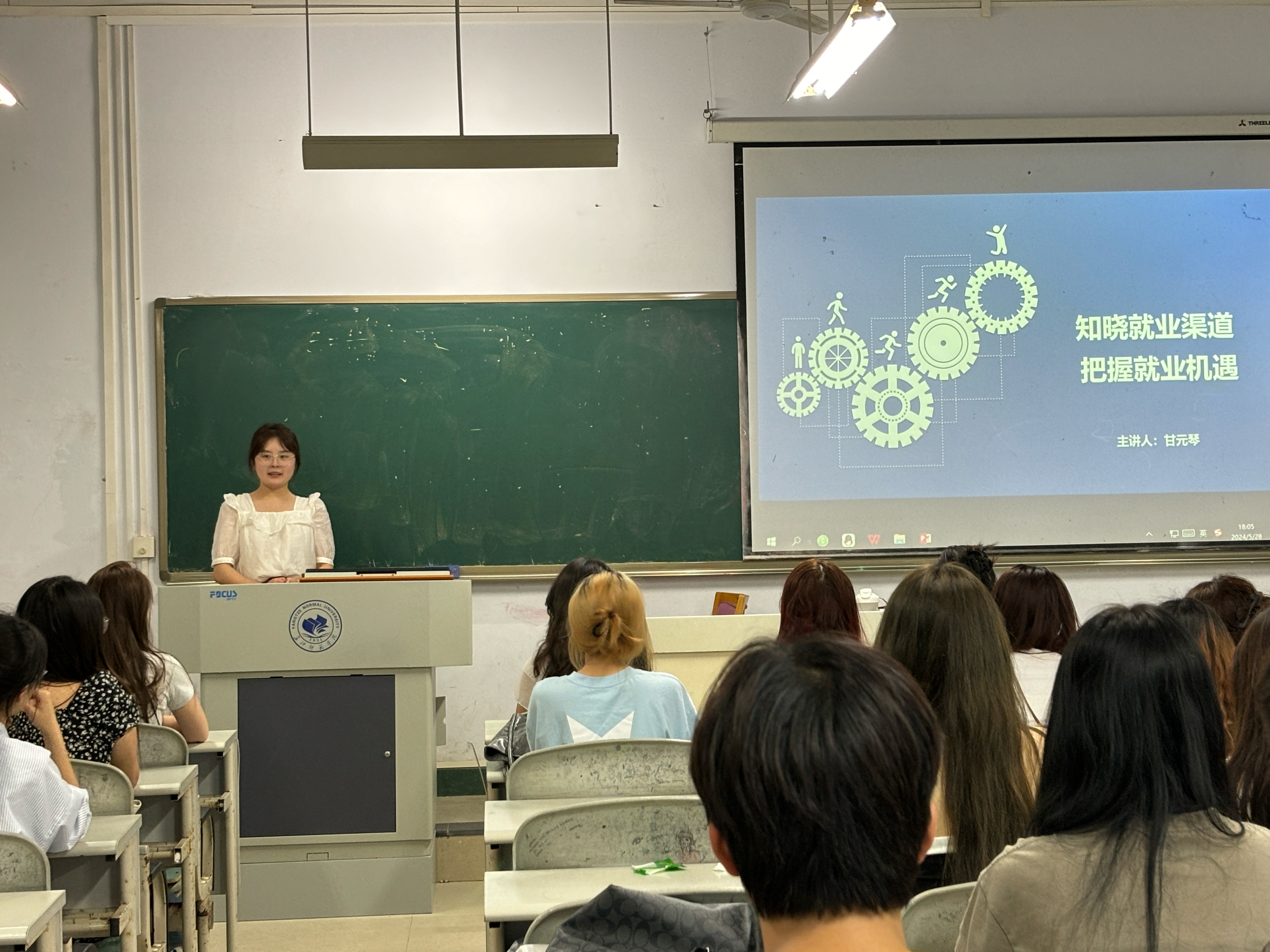5月26日,针对大三学生,海角论坛 2021级辅导员甘元琴老师举办了一场以“知晓就业渠道,把握就业机会”为主题的班会,旨在帮助学生们了解多样的就业途径,掌握就业技巧。