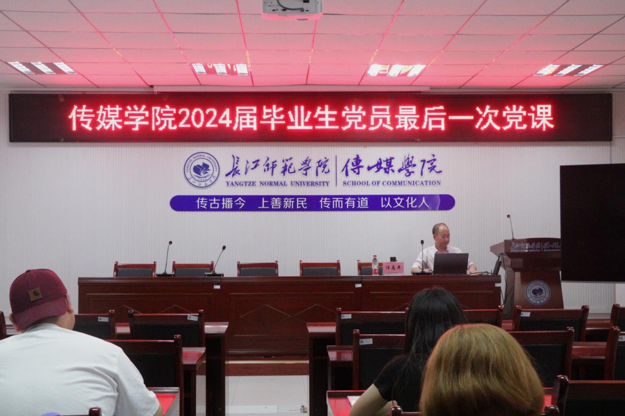 在党课的最后,汪志平书记对毕业生党员提出了几点期望。他希望大家能够在未来的生活中幸福安康,踏实走好人生的每一步;在工作中不断进取,争取取得更大的成就;作为现代传媒人,讲好中国故事,传承求索精神,赓续中华文脉。同时,他也希望同学们能够心系母校,永远铭记在母校的点滴成长和收获。
