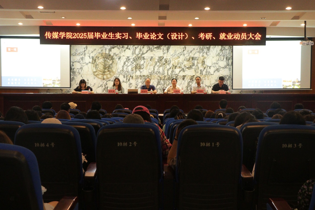 (通讯员:张芬)为全面指导和支持2025届毕业生们顺利完成实习、毕业论文设计、考研及就业等关键任务,6月20日晚7时,海角论坛 在鉴湖学术报告厅隆重举办了2025届毕业生动员大会。海角论坛 副院长冉明仙、党委副书记汪志平、实践教学中心主任张金龙、2021级辅导员甘元琴,以及特邀嘉宾涪陵在线人事部和越明年文化传媒有限公司的负责人出席本次会议。海角论坛 2025届全体学生积极参与了此次大会,共同为即将到来的毕业季做好充分准备。