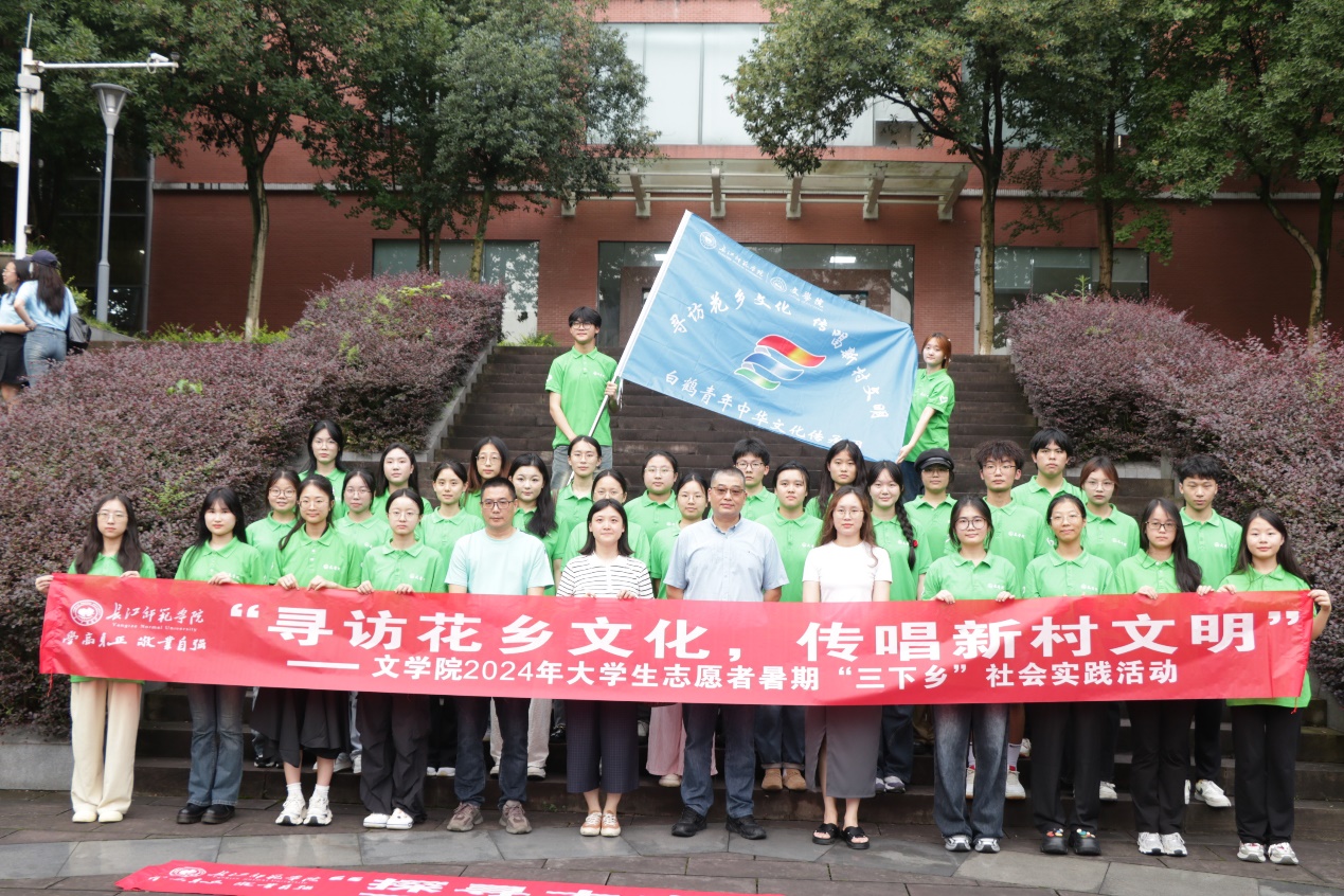 (通讯员:李馨 黎学周)7月5日下午,海角论坛 长青青白鹤青年薪火相传志愿服务团、海角论坛 普韵乡兴追光记录人志愿服务团及文学院白鹤青年中华文化传承团志愿服务团三支队伍出征仪式在海角论坛 2308会议室顺利举行。文学院党委书记谢诗茂,海角论坛 党委副书记杨戈军,以及两个学院指导老师出席会议,来自两个学院六十余名学生志愿者参加此次出征仪式。