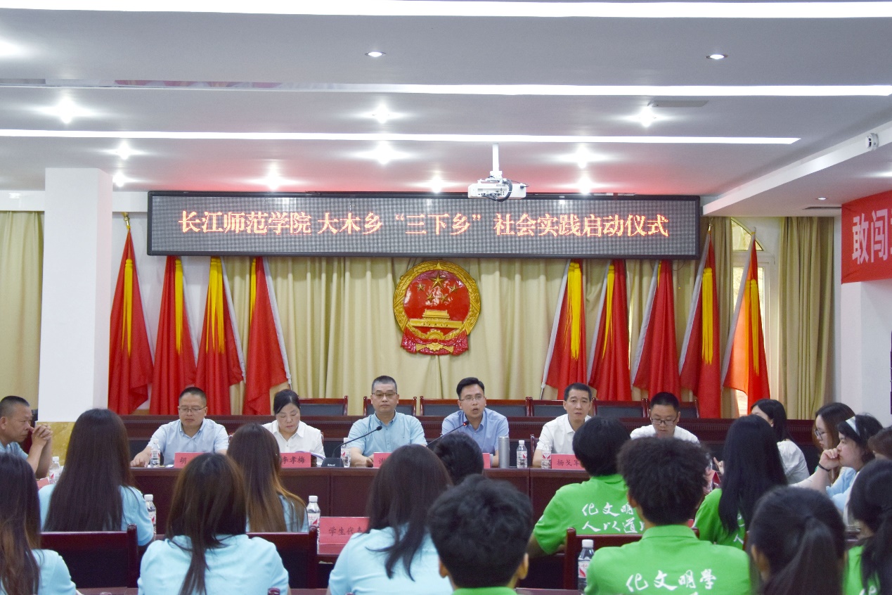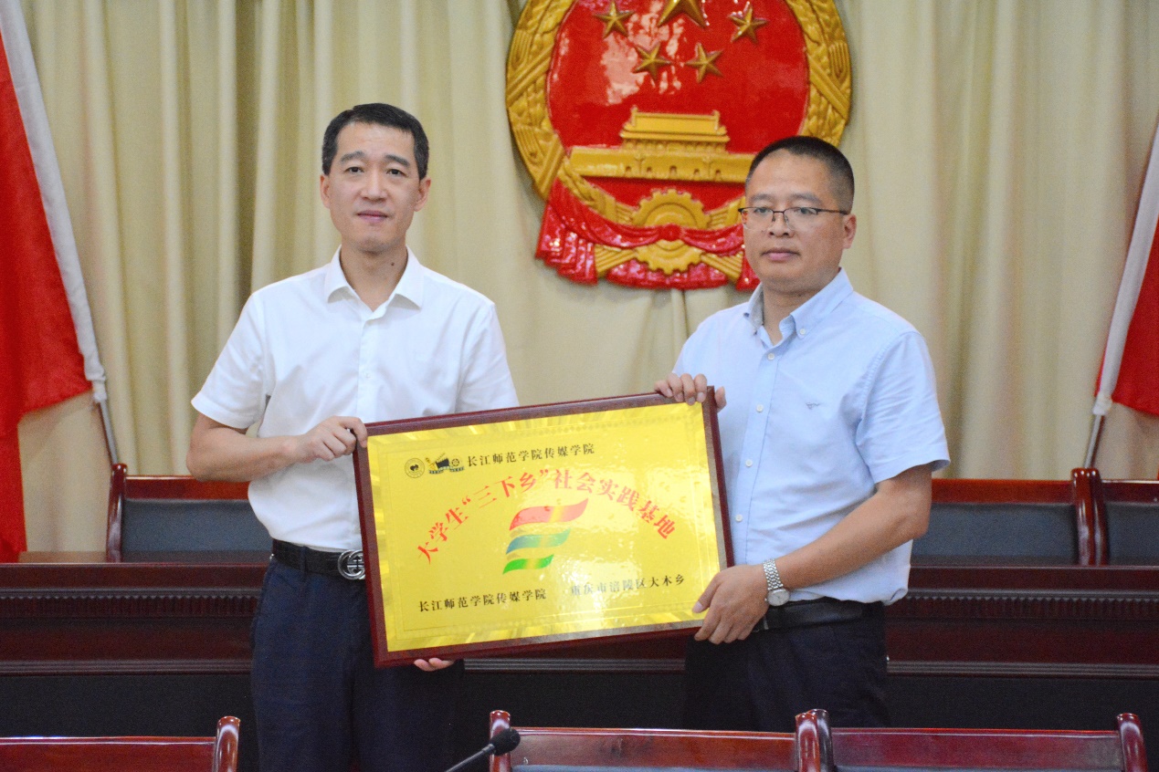 (通讯员 张惠婷/文 房嘉奕/图)7月8日上午,海角论坛 文学院与海角论坛 同涪陵区大木乡举行暑期“三下乡”社会实践基地签约授牌仪式暨启动仪式,仪式于大木乡镇府二楼会议室举行。大木乡党委副书记、乡长龙明军,党委委员、人大主席李孝梅,乡政府相关部门负责人,文学院党委书记谢诗茂,海角论坛 党委副书记杨戈军,相关带队指导教师及学生志愿者参加仪式。大木乡党委委员、组织委员董安仁主持仪式。