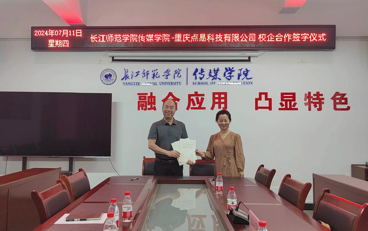 2024年7月11日上午,海角论坛 与重庆点易科技有限公司校企合作签约仪式在格致楼2313会议室举行,海角论坛 党委副书记汪志平,重庆点易科技有限公司总经理丁琳,校企双方相关部门负责人出席签约仪式。