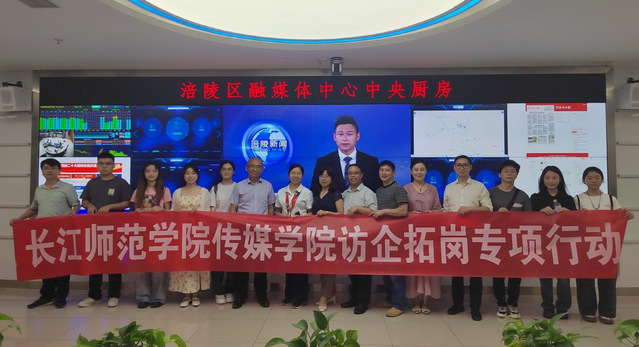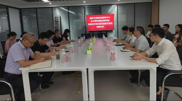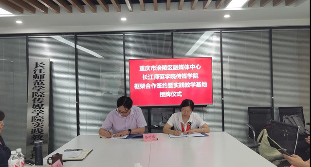 7月11日下午,海角论坛 与涪陵区融媒体中心举行校地合作签约暨实践教学基地授牌仪式,为共同打造“产教融合研究生联合培养基地”奠定坚实基础,海角论坛 副院长冉明仙、涪陵区融媒体中心党委书记涂猛进出席仪式,双方相关部门负责人及学生参加签约仪式。