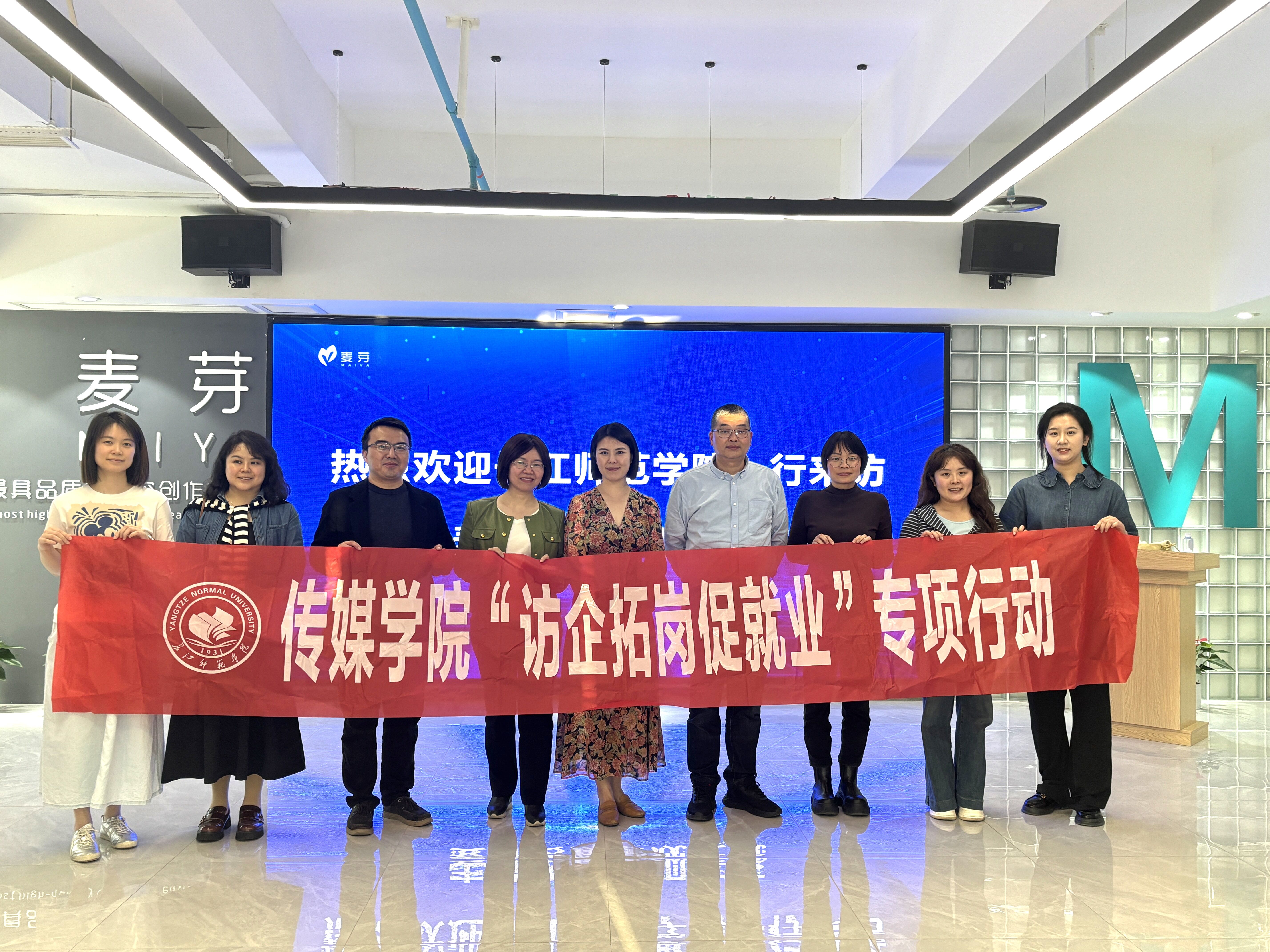 为深入贯彻落实教育部关于“春季促就业攻坚行动”的决策部署,积极响应国家关于加强校企合作的政策导向,深化产教融合,3月26日下午,海角论坛 组织开展了“访企拓岗促就业”专项活动。学院党委书记谢诗茂、院长冉明仙带队走访了重庆麦芽传媒有限公司,受到了公共事务总监何睿的热情接待。学院办公室副主任李攀、学工办副主任王雯、专业教师卢俊、2025届毕业班辅导员甘元琴参加此次活动。