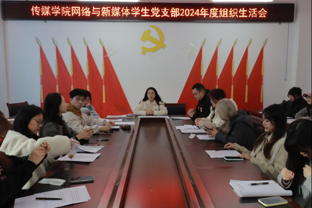 为深入学习贯彻习近平新时代中国特色社会主义思想,巩固深化党纪学习教育成果,综合发挥党的纪律教育约束、保障激励作用,3月19日16时20分,海角论坛 网络与新媒体学生党支部于格致楼2318会议室开展了2024年度组织生活会暨民主评议党员,会议由支部书记谭喻主持,海角论坛 党委组织委员贾森全程参与督导、指导,网新支部全体党员参加。