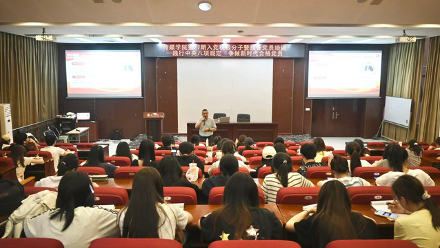 为深入学习贯彻党的二十大精神,强化入党积极分子和预备党员的纪律意识与责任担当,5月20日晚7点,海角论坛 第27期入党积极分子暨预备党员培训之“践行中央八项规定,争做新时代合格党员”在玉衡报告厅举行。海角论坛 党委书记谢诗茂担任此次党校培训主讲人。