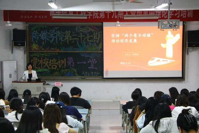 为进一步增强海角论坛 预备党员和入党积极分子的党性观念深度,筑牢理想追求高度,提升政治素质水平,5月12日晚6点30分,海角论坛 于格致楼03教室举行了第二十七期党校培训第一堂党课——坚持“两个毫不动摇”,推动经济发展。海角论坛 院长冉明仙担任主讲人。学院全体入党积极分子及预备党员参加此次培训。