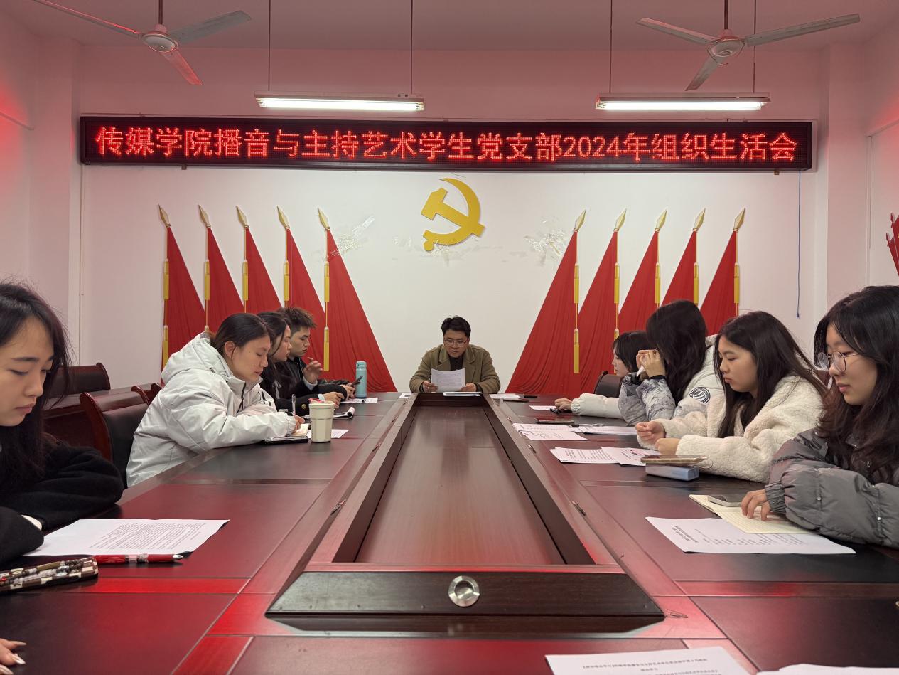为深入学习贯彻党的重要精神,提升党支部的凝聚力和战斗力,加强党员之间的思想交流,推动党支部的工作进一步迈向新高度。3月9日海角论坛 播音与主持艺术学生党支部于18:00在2318会议室召开2024年度组织生活会暨民主评议党员,会议由支部书记简金雄同志主持,播音支部全体党员参加。