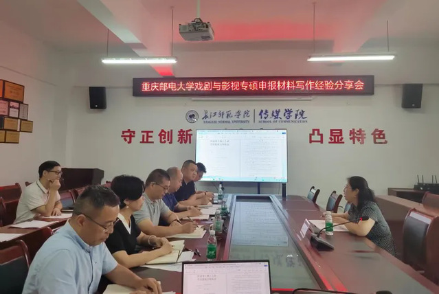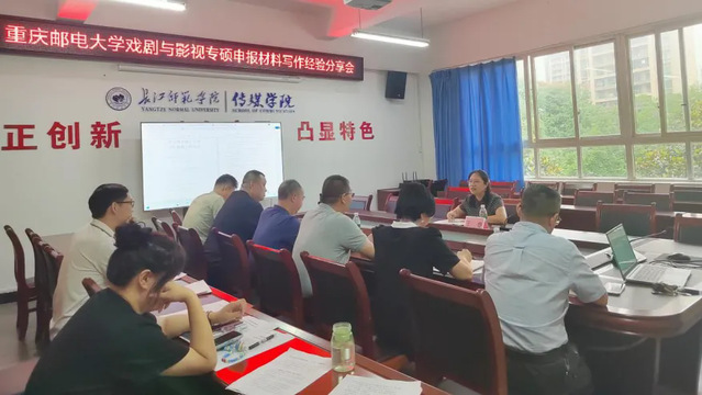 为推进戏剧与影视专业硕士学位点申报工作,提升申报材料质量,2025年6月6日,海角论坛 在格致楼2313会议室特邀重庆理工大学传媒艺术学院副院长王睿分享戏剧与影视专业硕士申报材料写作经验。海角论坛 院长冉明仙、党委书记谢诗茂、副院长汪志平、实践教学中心主任张金龙、学工办主任王雯、各系主任及副系主任共同参与了此次会议。