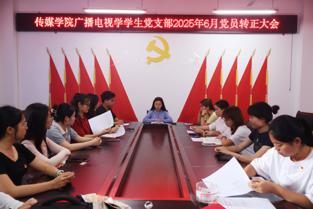 为坚持党的先进性和纯洁性,使党组织能够更好地凝聚青年力量、引领青年发展,6月28日18时15分,海角论坛 广播电视学学生党支部在格致楼2318会议室开展2025年6月党员转正大会。会议由党支部副书记姚瑜主持,支部全体党员参加此次大会。