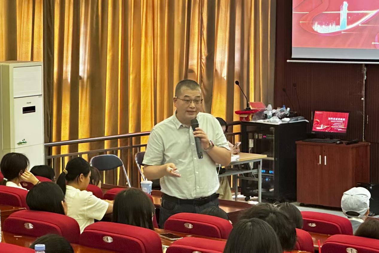 谢诗茂书记以“如何走进党组织”为主题,首先深刻阐述了大学生申请入党的重大意义。他强调,入党是“一次思想的淬炼、觉悟的升华、特殊的奉献”,并指出必须树立“为实现共产主义奋斗终生”的正确入党动机,强调践行“吃苦在前、享受在后,克己奉公、多做贡献”的入党要求。随后,谢书记介绍了2022年党的二十大修订的《中国共产党章程》关于党的性质、纲领和行动指南,以及申请入党的基本条件,系统讲解了“提交入党申请—确定入党积极分子—培养教育考察—确定发展对象—接收预备党员—预备党员教育考察和转正”的完整流程,并对入党申请书、自传、家庭成员及主要社会关系、思想汇报等材料的撰写规范作了详细说明。