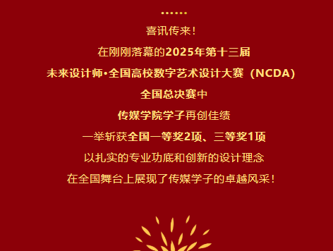 四、以赛促教、以创促学,构建“竞赛—创作—实践”三位一体的育人生态。积极组织学生参与大广赛、数字艺术设计大赛等权威赛事,依托项目成果和真实案例开展教学,使学生屡获国家级和省级奖项,锻炼出一批具备创新能力和专业素养的高素质人才。如近期学生在数字艺术大赛中获全国一等奖2项、全国三等奖1项;在大广赛中,学院今年在大广赛获得全国二等奖2项,全国三等奖8项,全国优秀奖27项,省级以上奖项数百项,以扎实的专业功底和创新的设计理念在全国舞台上展现了传媒学子的风采。