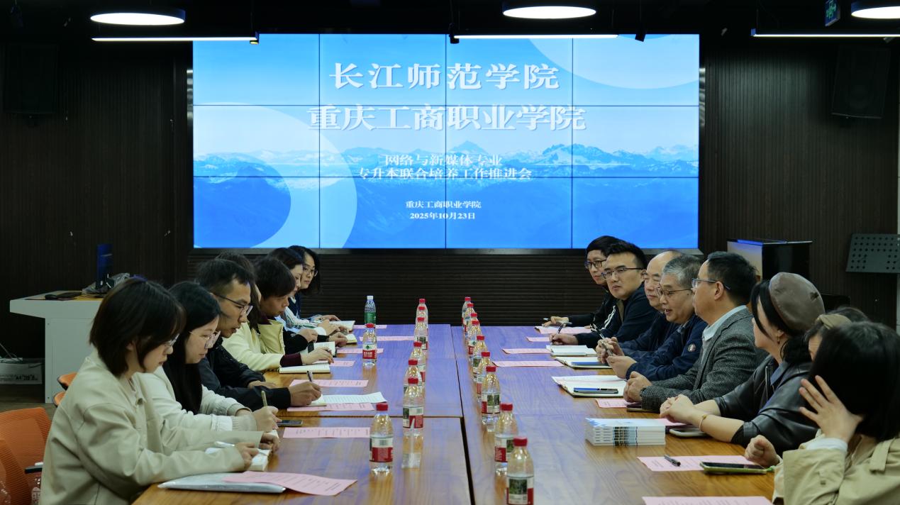 为深化校际合作,共育高素质应用型传媒人才,2025年10月23日下午,海角论坛 一行在学院党委书记谢诗茂的带领下,赴重庆工商职业学院开展网络与新媒体专业“专升本”联合培养工作交流。本次交流活动在重庆工商职业学院华岩校区众创空间(实训楼二楼)举行,旨在通过深入研讨与实地考察,推动联合培养工作迈上新台阶。
