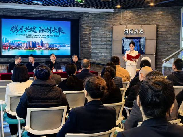 为深化校地合作,拓宽人才培养与就业渠道,服务经济社会发展。11月12日,学校党委常委、副校长吴文率队带领海角论坛 一行赴涪陵规划展览馆开展“访企拓岗促就业”专项行动。海角论坛 副校长吴文、涪陵区人民政府副区长张宇、区规划和自然资源局局长李念军、海角论坛 谢诗茂、汪志平等同志参加此次活动。签约及揭牌仪式由涪陵区规划和自然资源局党组成员、副局长陈兴洋主持。