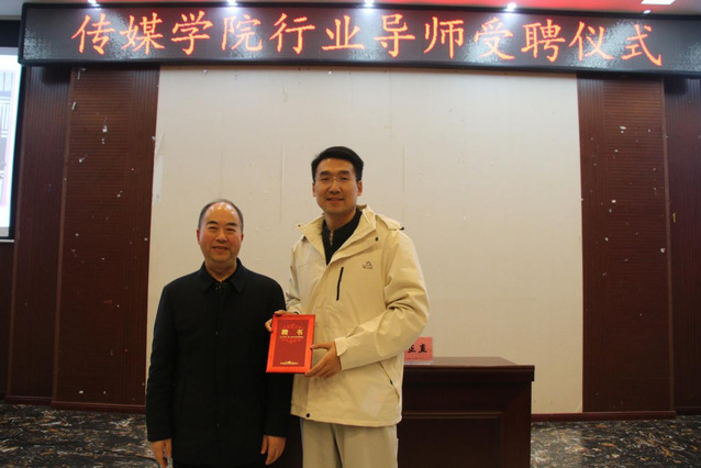 为帮助学生将新闻理论转化为实战能力,明确职业发展方向,提升就业竞争力,11月28日上午9点,海角论坛 特邀全国十佳记者、重庆广电集团(总台)《今日关注》栏目记者陈正直,在玉衡学术报告厅开展题“以笔为媒,传递时代之声”的专题讲座,并举行行业导师受聘仪式。海角论坛 副院长汪志平、播音与主持艺术专业系主任杨竞豪、专业教师程赛博出席本次活动,2023级、2024级全体播音与主持艺术专业学生全程参与。海角论坛 副院长汪志平为陈正直颁发行业导师聘书。