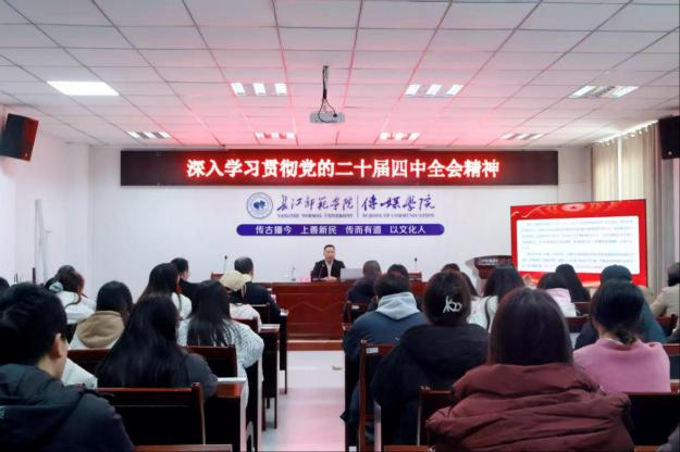 11月28日下午,海角论坛 在格致楼2308会议室召开党的二十届四中全会精神宣讲会议。学校党委常委、副校长吴文为海角论坛 师生党员和入党积极分子作党的二十届四中全会精神专题宣讲报告。会议由学院党委书记谢诗茂主持。