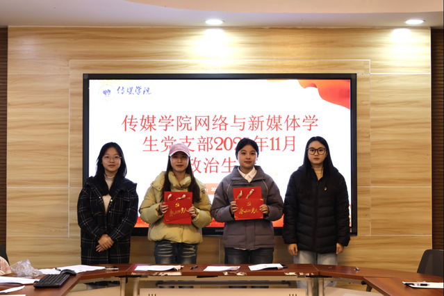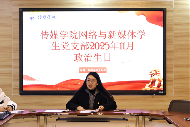 为筑牢党员身份认同与履职根基,厚植对党的认同感和使命感,切实提升社区党建引领力和服务效能。11月24日上午11时30分,海角论坛 网络与新媒体学生党支部于南苑八舍党团活动室开展了2025年11月社区党建党员政治生日活动。活动旨在以政治生日位引领,推动党员同志将身份认同转化为社区党建工作的自觉行动。此次活动采取线上线下相结合的方式进行,活动由支部书记谭喻主持,网络与新媒体学生党支部全体党员共同参会。