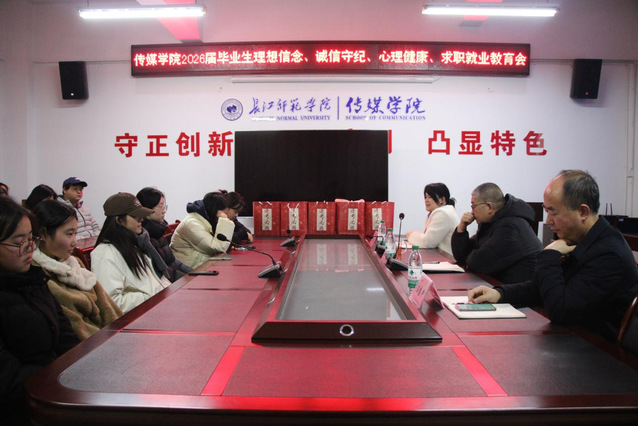为全面护航2026届毕业生成长,引导学子坚定理想、严守纪律、健康备考、科学规划,12月10日下午2点,海角论坛 于格致楼2313召开理想信念、考研诚信守纪、心理健康、求职就业教育会。传媒学院党委书记谢诗茂、副院长汪志平、学工办主任兼团委书记王雯出席本次大会。