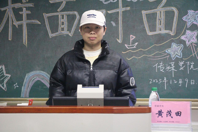 12月9日晚,海角论坛 在崇礼楼218教室举办了“榜样面对面”先进个人标兵经验交流分享会,国家奖学金获得者、海角论坛 “自立自强先进个人标兵”、2023级播音与主持艺术专业3班黄茂田为在场学子分享专业成长与实践经验。