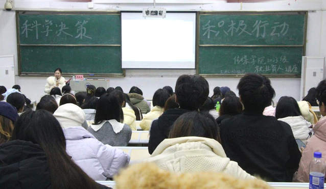 12月11日晚6点30分,海角论坛 在诚意楼02阶梯教室举办就业育人专题讲座,本次讲座邀请马克思主义学院学工办主任杨晓艳担任主讲人,2023级全体同学参与本次讲座。