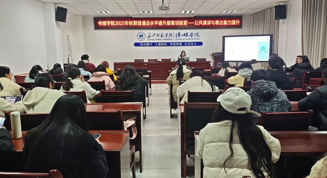 为进一步提升学生的语言表达感染力,推动普通话表达能力从“敢说”向“会说”迈进,1218日晚7点,海角论坛 2025年秋期普通话水平提升朋辈训练营第三期——“从‘敢说’到‘会说’,让表达更有‘温度’”课程在格致楼2308会议室顺利开展。本次活动由2024级播音与主持艺术3班刘文涵担任主讲人,来自各二级学院同学参与此次活动。
