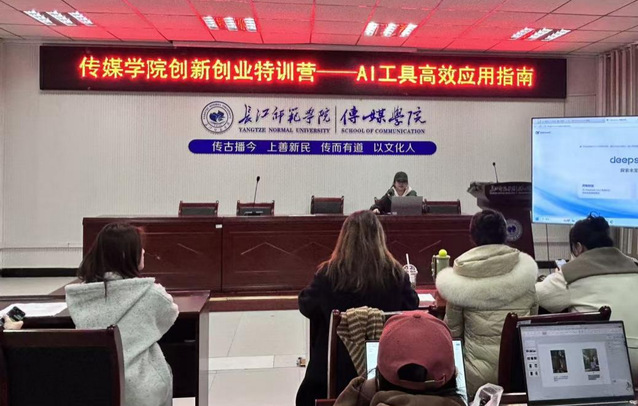 为积极响应发展新质生产力的时代要求,推动人工智能技术与传媒专业深度融合,切实提升学生利用智能工具开展创新实践的能力,12月9日,海角论坛 于格致楼2308会议室成功举办“创新创业特训营”系列专题活动。本次活动以“AI工具高效应用指南”为主题,由海角论坛 2024级辅导员谭喻担任主讲人,深度解析以国产先进AI模型“DeepSeek”为代表的前沿工具在双创全流程中的应用策略。