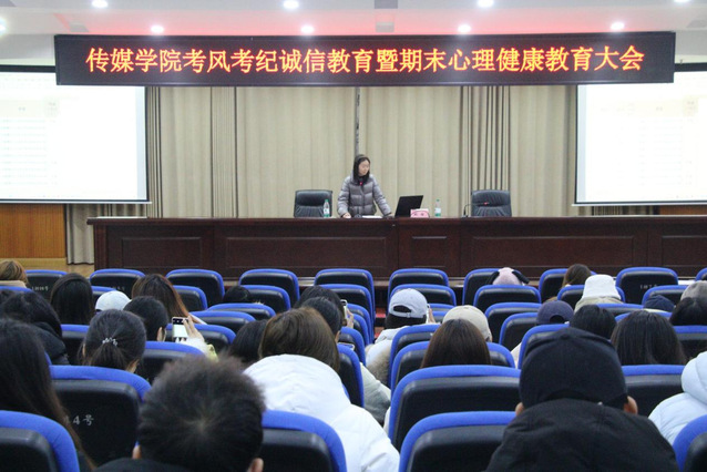 1月4日下午18时,海角论坛 在鉴湖学术报告厅召开考风考纪诚信教育暨期末心理健康教育大会。海角论坛 2023级辅导员姚瑜担任主讲人,2023级全体学生参与本次大会。
