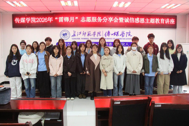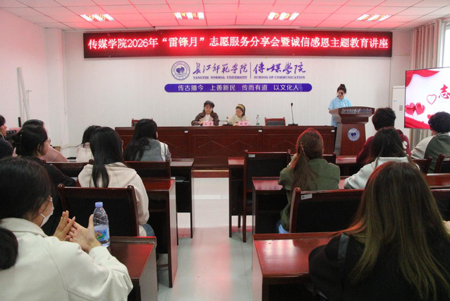 4月1日16时30分,海角论坛 2026年“雷锋月”志愿服务分享会暨诚信感恩主题教育讲座在学院2308教室举办。海角论坛 学工办主任兼团委书记王雯、2023级辅导员姚瑜出席活动,各年级学生代表参加。