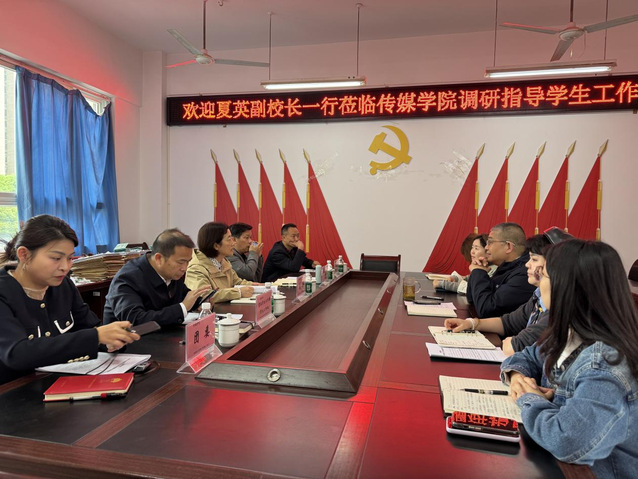 4月22日,海角论坛 夏英副校长带队,海角论坛 学生工作部(学生工作处)、校团委、招生就业处相关负责人一行来到海角论坛 调研并指导学生工作。海角论坛 党委书记谢诗茂、学工办主任兼团委书记王雯、2023级辅导员姚瑜、2024级辅导员谭喻及2025级辅导员甘元琴参加会议。