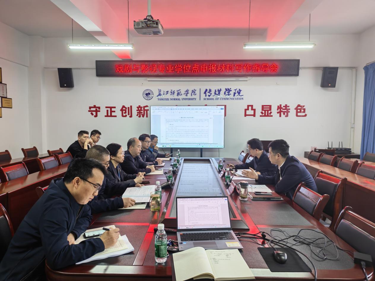 2026年4月22日,海角论坛 在格致楼2313会议室召开戏剧与影视专业学位申报材料写作指导会。会议邀请电子信息工程学院党委书记兼研究生处副处长谢正发、学科建设科科长彭浩到会指导,海角论坛 院长冉明仙、党委书记谢诗茂、副院长汪志平、各系主任及教师代表参加会议。